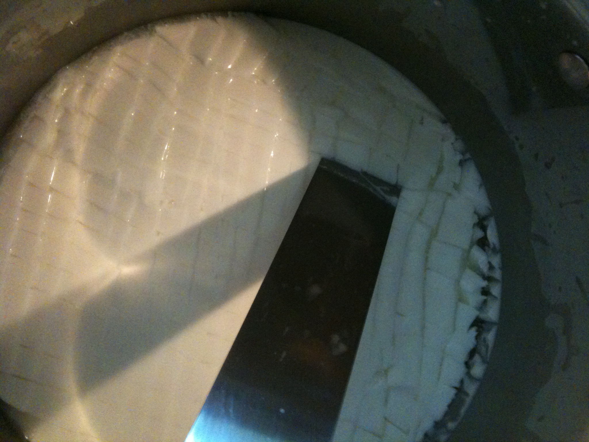 5) Beat the dough in the kitchen aid on high until it pulls off the bottom of the bowl. (It starts out nearly like pancake batter, but beating it for 15 minutes on high in the kitchen aide should develop the gluten enough that it will hang together, start pulling off the sides of the bowl, and then off the bottom of the bowl. If you’re using all purpose flour, it will probably take longer. if you’re using some portion whole wheat, it will come together faster, but the texture wont be as stretchy, so I’d recommend adding a little more water.) KEEP AN EYE ON THE MIXER, as it likes to start walking along the counter towards the end of this!